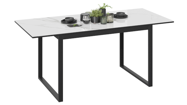 Новинка выполнена в актуальном декоре «Черный муар/стекло белый мрамор», который, оценят любители стильных и необычных решений. Стол будет эффектно смотреться и привлечет внимание своим внешним видом.