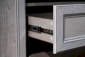 Благодаря современным технологиям дверцам и выдвижным ящикам не нужны доводчики – они легко и дружелюбно распахиваются и выдвигаются навстречу  по первому желанию хозяев. Шариковые направляющие обеспечивают очень плавный ход. Дверцы и ящики снабжены металлическими ручками, которые учитывают анатомию ладони, поэтому ими очень удобно пользоваться.