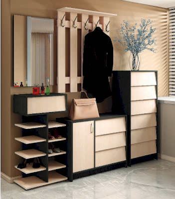 Интро - это целая серия мебели, с помощью которой вы можете обустроить прихожую. В серии представлены обувницы разных размеров с откидными створками, шкаф, зеркало, вешалки.