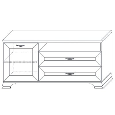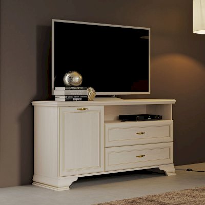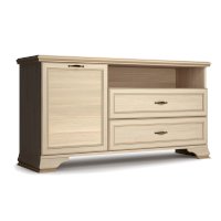 Для закрытого хранения предусмотрены два 2 ящика и отделение с дверкой. Ниша под крышкой визуально облегчает конструкцию изделия и помогает разместить различную телевизионную аппаратуру.