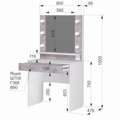 Туалетный стол с подсветкой Акцент 12 (Аквилон)