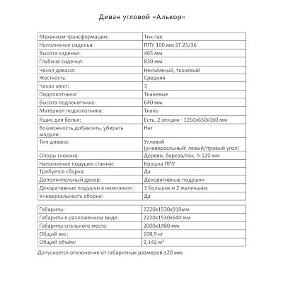 | Ширина спального места, см | 148 |