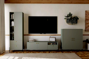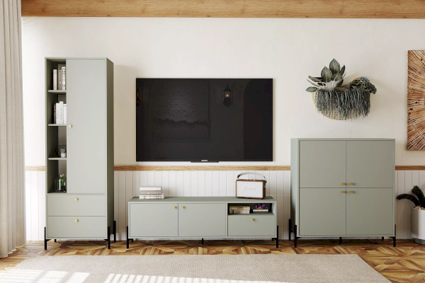 Тумба из коллекции Нуар цвета Хаки подойдет для тех, кто ищет необычный современный дизайн. Это слияние двух стилей – строгая геометрия линий придает сдержанности и минимализма, а изящные формы добавляют классического благородства. Круглые ручки золотого цвета подчеркивают уникальность стиля коллекции.