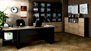 Стильная эргономичная мебель из модульной серии «Успех-2» оформлена в респектабельно-эффектном сочетании контрастных оттенков натуральной древесины: тёмного «Венге Цаво» и светлого «Дуб Сонома». В коллекцию входят столы, шкафы, стеллажи, тумбы разной конструкции и назначения, что позволяет подобрать оптимально отвечающую вашим требованиям меблировку для каждой комнаты офиса.