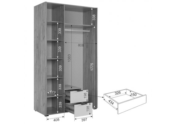 Наполнение шкафа штанга / зеркало / выдвижные ящики