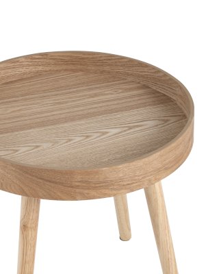 Круглый журнальный столик в скандинавском стиле. Столешница выполнена из МДФ с бортами по краям для удобства и покрыта шпоном из светлого ясеня. Ножки из массива дерева гармонично сочетаются со столешницей и выдерживают нагрузку до 50 кг. Столик идеально впишется в интерьер в светлых тонах и дополнит природными мотивами.