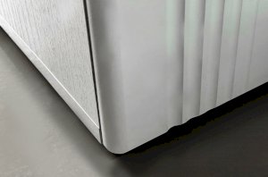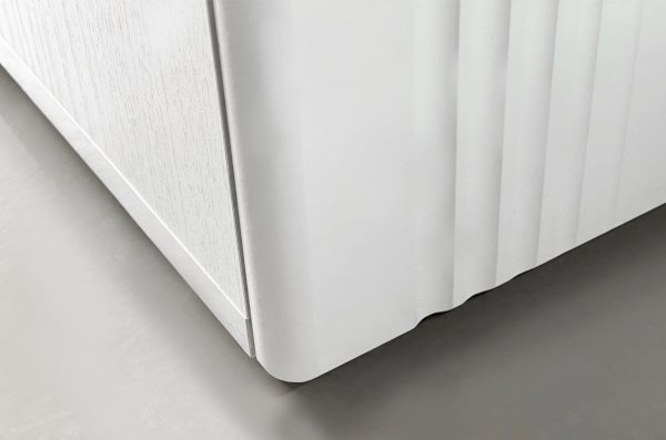Корпус шкафа выполнен из прочного и надежного материала - ламинированной ДСП белого дерева, а фасады из качественного МДФ, покрытого матовой пленкой ПВХ белого цвета. Уникальная декоративная фрезеровка на вертикальных полосах фасада придает шкафу изысканный вид.