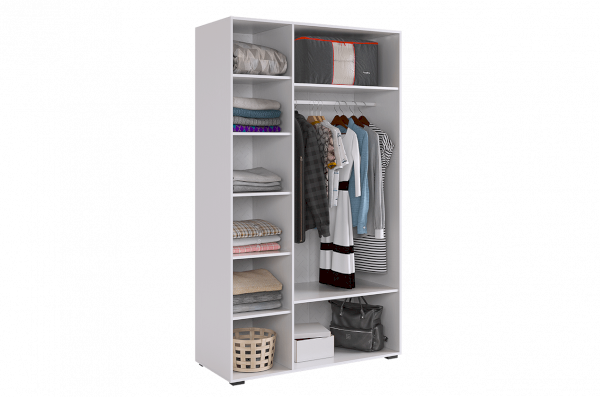 Шкаф Ева 105.01 имеет две секции - одну с штангой и двумя полками, и вторую с пятью полками, что позволяет эффективно организовать хранение одежды, обуви и других необходимых вещей. Благодаря бесшумному закрыванию фасадов, вы не будете беспокоиться о создании лишнего шума при использовании шкафа.