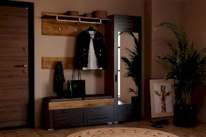 Вешалка Livorno - стильная замена платяному шкафу в малогабаритной прихожей. Модуль выполнен в виде настенной панели с тремя крючками для одежды. В верхней части вешалки расположены полка для головных уборов и аксессуаров. Модель также оснащена штангой для аккуратного размещения одежды на вешалках-плечиках.